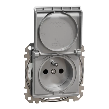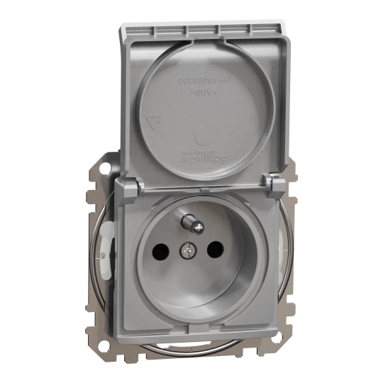 Gniazdo pojedyncze z uziemieniem, 2P+PE z przesłonami IP44 (zaciski bezgwintowe), srebrne aluminium SEDNA DESIGN o numerze katalogowym SDD213014 w kategorii Gniazda podtynkowe, Gniazda instalacyjne. Produkt wyprodukowany przez markę SCHNEIDER ELECTRIC, seria SEDNA DESIGN.