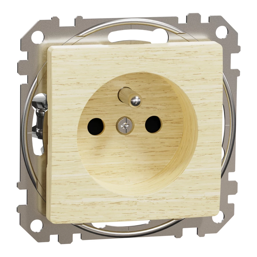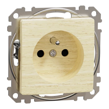 Gniazdo zasilające 2P+PE z przesł tor prąd, zac bezgw, brzoza, ef drewna, Sedna Design i Elements SDD180012