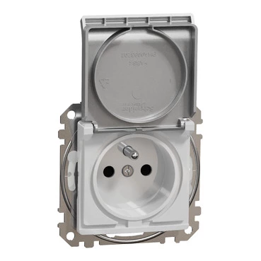 Gniazdo pojedyncze z uziemieniem, 2P+PE z przesłonami IP44, srebrne aluminium SEDNA DESIGN o numerze katalogowym SDD213013 w kategorii Gniazda podtynkowe, Gniazda instalacyjne. Produkt wyprodukowany przez markę SCHNEIDER ELECTRIC, seria SEDNA DESIGN.