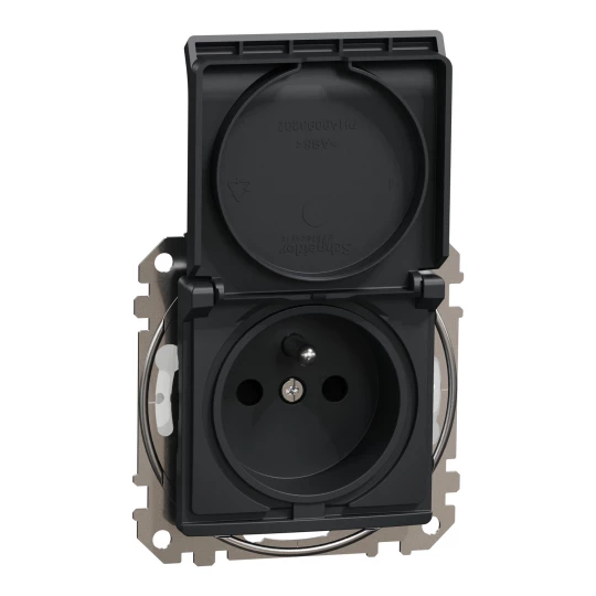 Gniazdo pojedyncze z uziemieniem, 2P+PE z przesłonami IP44, czarny antracyt SEDNA DESIGN o numerze katalogowym SDD214013 w kategorii Gniazda podtynkowe, Gniazda instalacyjne. Produkt wyprodukowany przez markę SCHNEIDER ELECTRIC, seria SEDNA DESIGN.