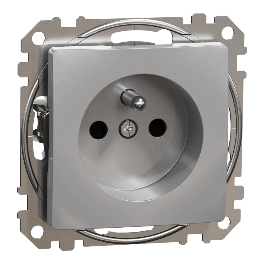 Gniazdo pojedyncze z uziemieniem, 2P+PE z przesłonami, srebrne aluminium SEDNA DESIGN o numerze katalogowym SDD113011 w kategorii Gniazda podtynkowe, Gniazda instalacyjne. Produkt wyprodukowany przez markę SCHNEIDER ELECTRIC, seria SEDNA DESIGN.