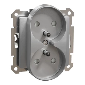 Gniazdo 2x2P+PE przesł do syst ramkowego (do ramek Sedna Elements), srebrne alum, Sedna Elements SDD113271