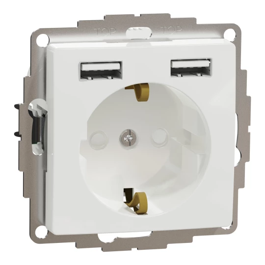 Gniazdo zasilające Schuko + podw gniazdo ładowania USB typ A 2,4A, białe, Sedna Design i Elements SDD111052