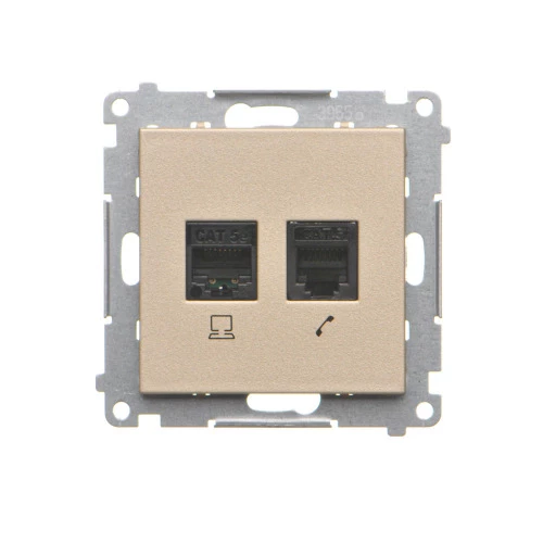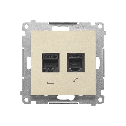 Gniazdo komputerowe RJ45 kategoria 5e + telefoniczne RJ12 (moduł): Szampański mat, SIMON55 o numerze katalogowym   T5F.01/144 w kategorii Łączniki i gniazda instalacyjne>Gniazda teleinformacyjne, multimedialne. Produkt wyprodukowany przez markę KONTAKT-SIMON, seria SIMON 55.