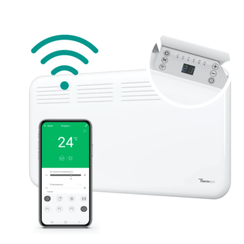 GRZEJNIK KONWEKTOROWY ELEKTRYCZNY 1000W 230V+ TERMOSTAT ELEKTRONICZNY WIFI BIAŁY SIMPLA+ 10 THERMECO