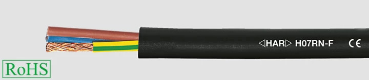 Przewód w izolacji gumowej H07 RN-F zgodny z DIN VDE 0285-525-2-21, DIN EN 50525-2-21, BS 7919, IEC 60245-4. Elastyczne gumowe przewody H07 RN-F stosowane są do urządzeń w zakładach rzemieślniczych, kotłach warzelnych, płytkach grzejnych, narzędziach elektrycznych tj. wiertarki, piły tarczowe, a także do maszyn na budowach. Nadają się do układania również na prowizorycznych budowach i w barakach mieszkalnych. Mogą być stosowane do bezpośredniego łączenia podzespołów i elementów mechanicznych maszyn i podnośników w tym dwigów i żurawi. Przy zabezpieczonym ułożeniu w rurach i urządzeniach mogą być eksploatowane nawet do 1000 V napięcia zmiennego lub do 750 V napięcia stałego.