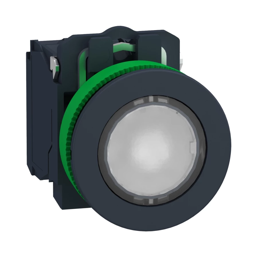 Harmony XB5 Przycisk podświetlany płaski plastik. biały fi30 zintegrowana dioda LED 230…240 V AC 1Z + 1R XB5FW31M5