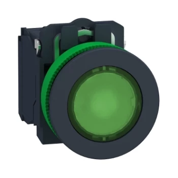 Harmony XB5 Przycisk podświetlany płaski plastik. zielony fi30 zintegrowana dioda LED 24 V AC/DC 1Z + 1R XB5FW33B5