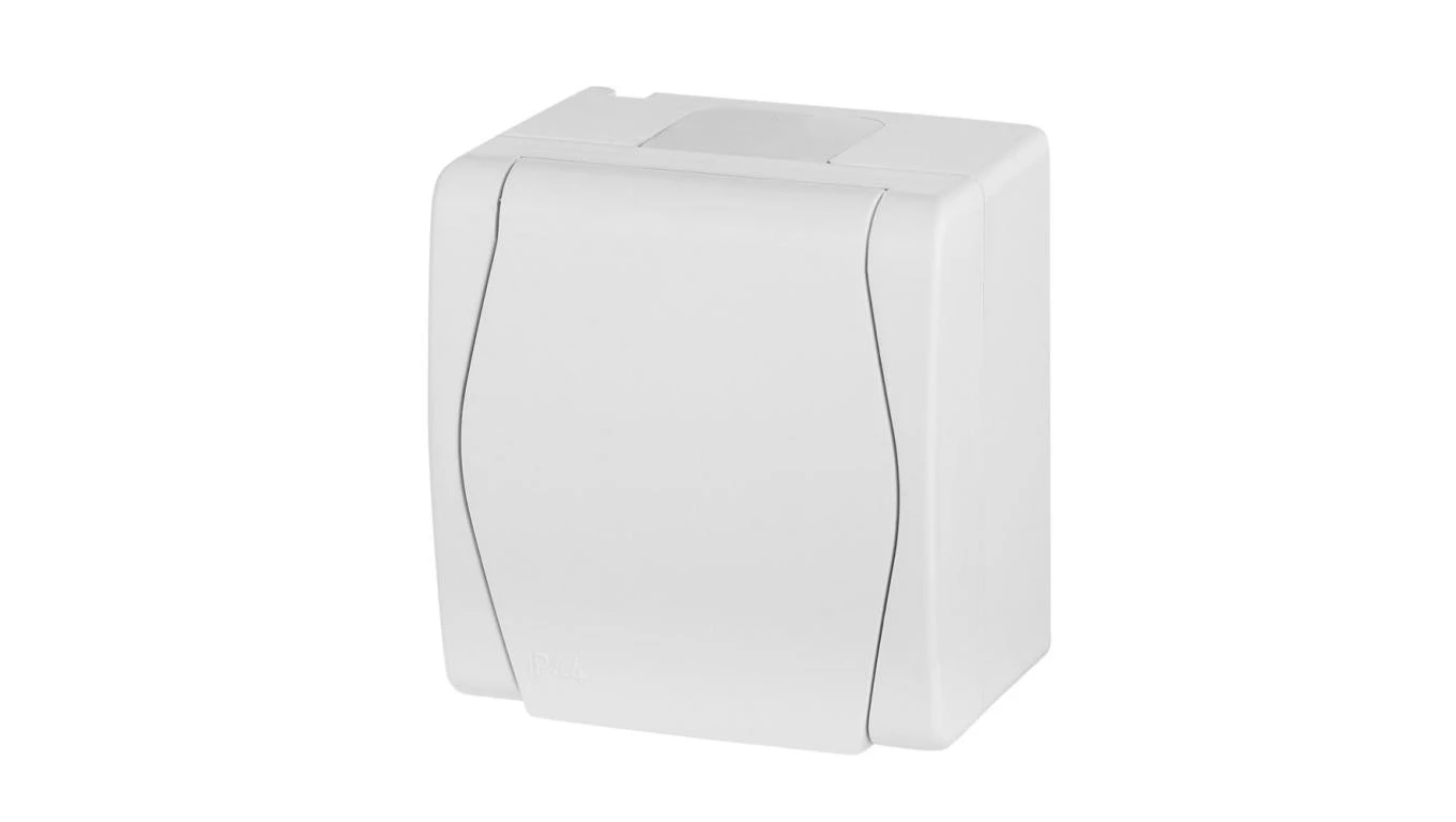 Simon Aquarius Gniazdo hermetyczne pojedyncze z/u IP54 z przesłoną torów i klapką pełną białe AQGZ1z/11