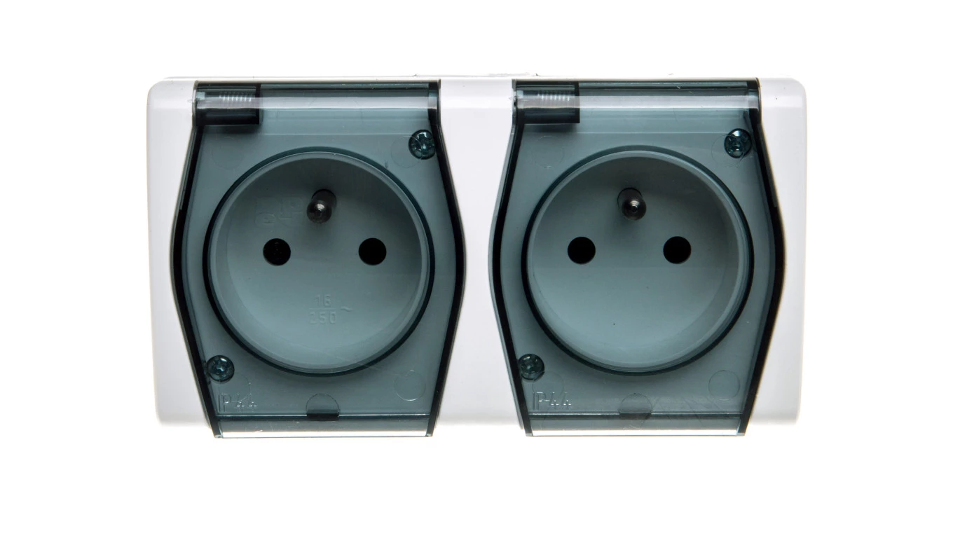 HYDRO Gniazdo hermetyczne podwójne z/u IP44 z klapką białe 120436