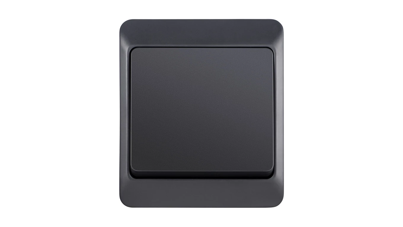 Łącznik jednobiegunowy/schodowy, szary/antracyt IP44 HERMES o numerze katalogowym 0331-07 w kategorii Łączniki natynkowe schodowe, Łączniki schodowe. Produkt wyprodukowany przez markę ELEKTRO-PLAST NASIELSK, seria HERMES.