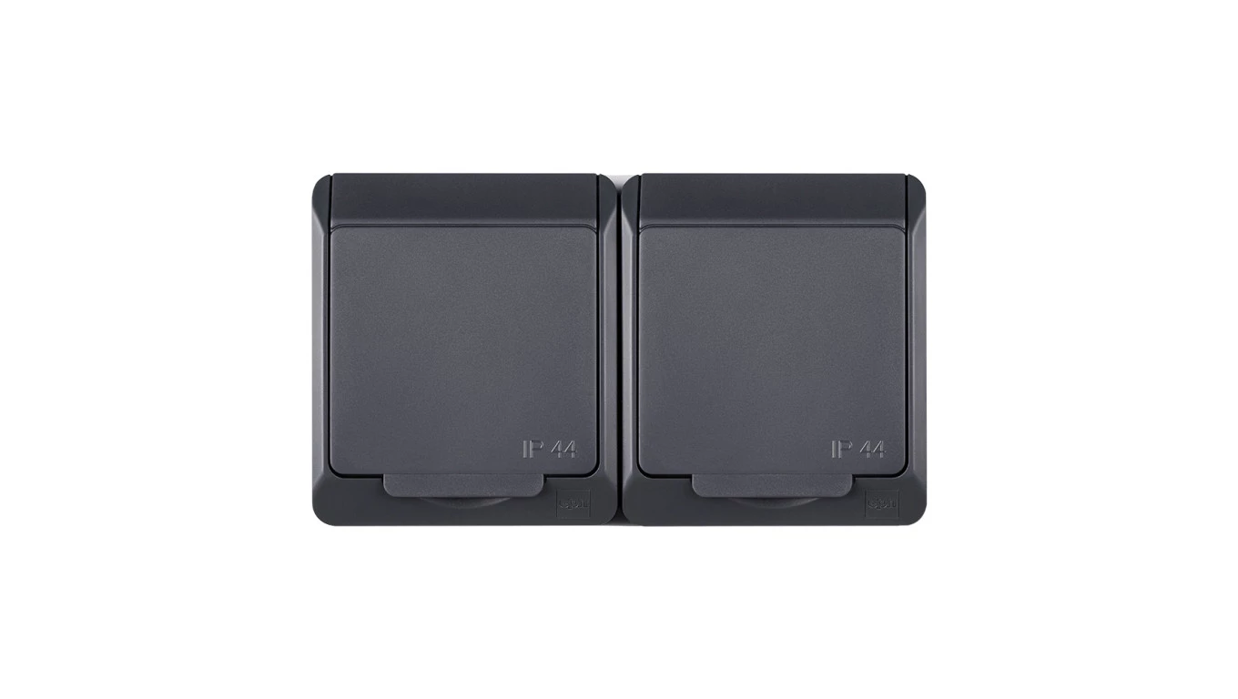 HERMES ANTRACYT GNIAZDO NT 2X SCHUKO Z KLAPKĄ IP44 2P+Z ZACISKI ŚRUBOWE 16A 250V