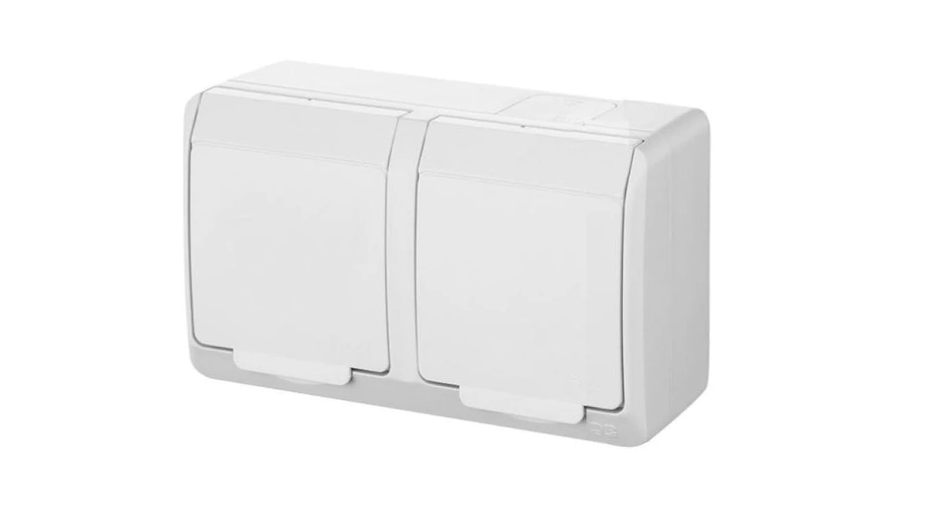 HYDRO Gniazdo hermetyczne podwójne z/u IP44 z klapką białe 120436