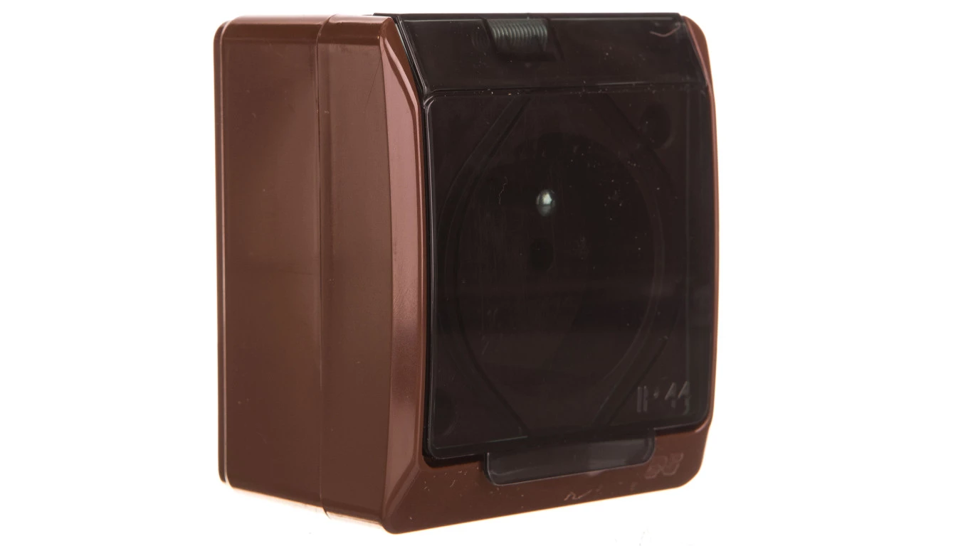 HERMES BRĄZ GNIAZDO NT 1X Z/U Z KLAPKĄ DYMNĄ IP44 ZACISKI ŚRUBOWE 16A 250V