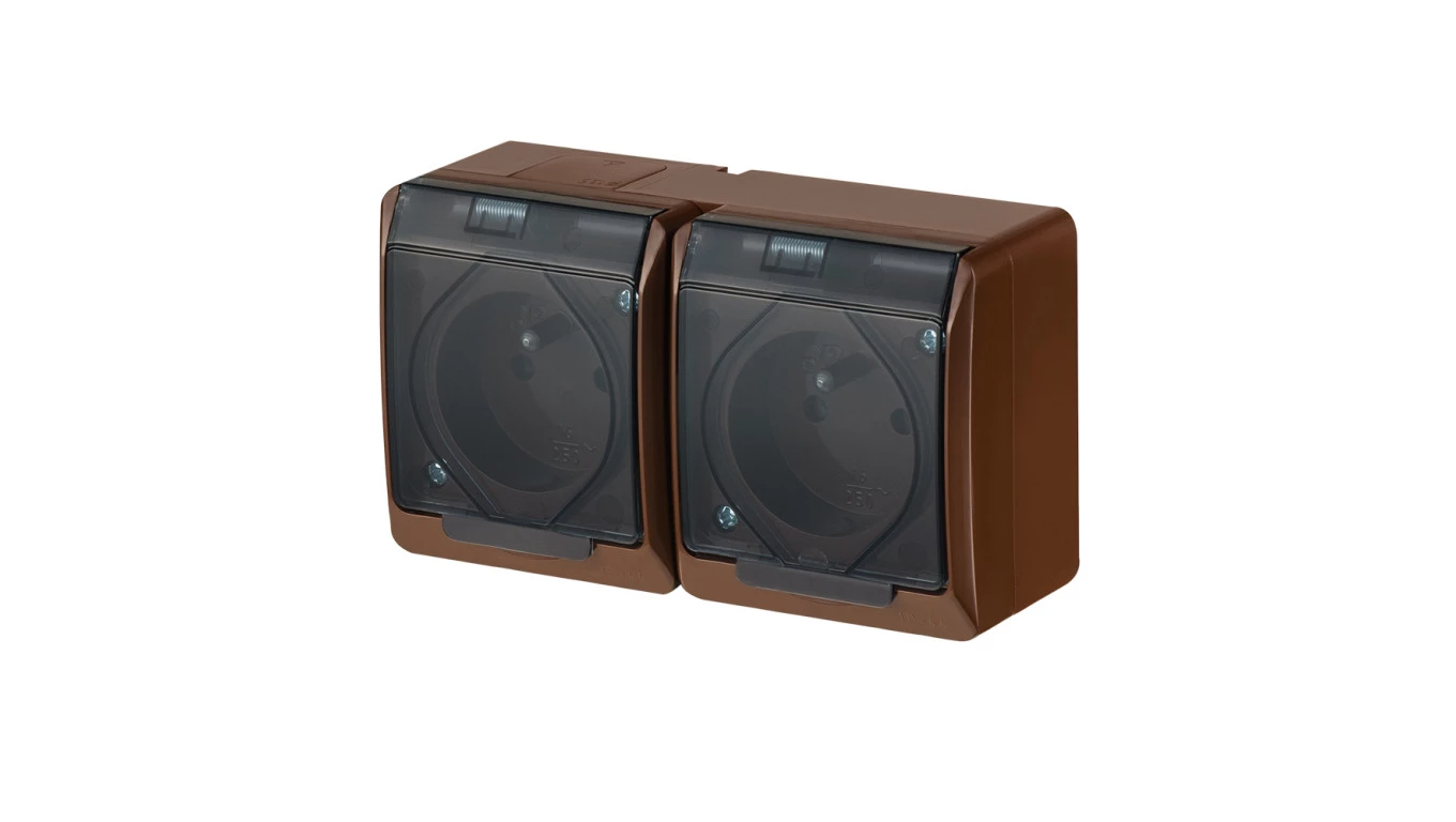 HERMES BRĄZ GNIAZDO NT 2X Z/U Z KLAPKĄ DYMNĄ IP44 ZACISKI ŚRUBOWE 16A 250V