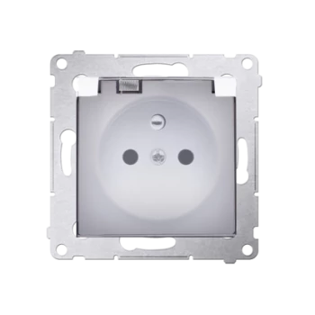 Simon 54 Gniazdo bryzgoszczelne z/u IP44 z przesłoną torów i klapką pełną białe DGZ1BZ.01/11