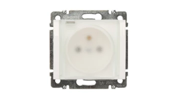 Simon 54 Gniazdo pojedyncze SCHUKO z/u 16A IP20 z przesłoną torów, szybkozłącza, białe DGSz1CZ.01/11