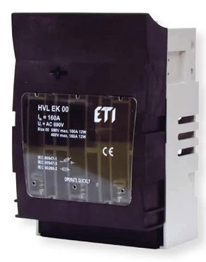 Rozłącznik bezpiecznikowy skrzynkowy 3-biegunowy HVL EK 00 3p OS00 6-50 o numerze katalogowym 001701251 w kategorii Akcesoria bezpiecznikowe, Rozłączniki, podstawy bezpiecznikowe. Produkt wyprodukowany przez markę ETI, seria WT-NH.