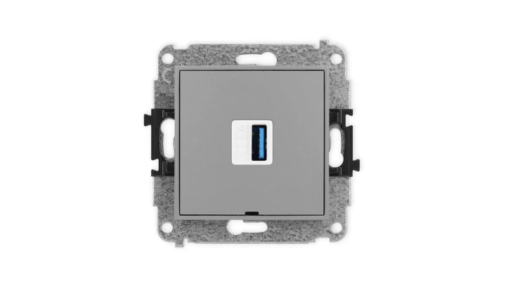 ICON Mechamizm gniazda pojedynczego USB A-A 3.0, bez pola opisowego szary mat 27IGUSBBO-5