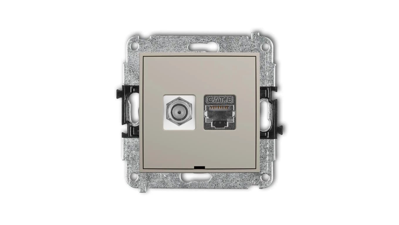 ICON Mechanizm gniazda antenowego F (SAT) + gniazda komp. poj. 1xRJ45, kat. 6 ekranowany, 8-stykowy, bez opisu taupe 60IGFKBO-5