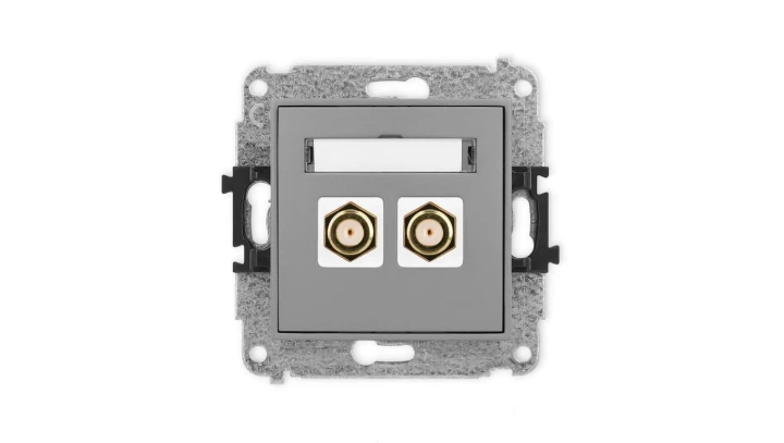 ICON Mechanizm gniazda antenowego podwójnego typu F (SAT) pozłacany szary mat 27IGF-2.1