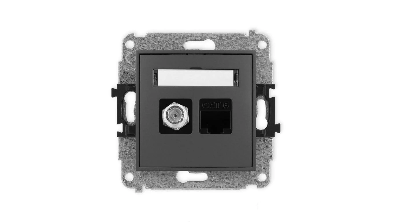ICON Mechanizm gniazda antenowego poj. typu F (SAT) + gniazda komp. poj. 1xRJ45, kat. 6, 8-stykowy grafitowy mat 28IGFK-3