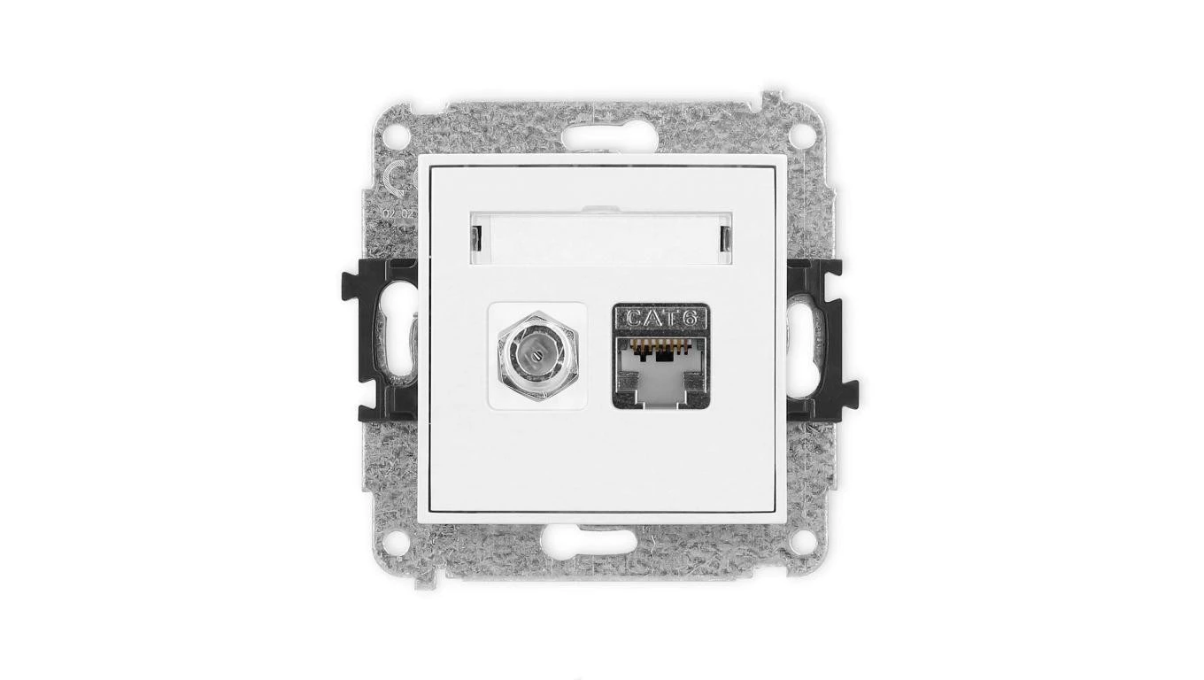 ICON Mechanizm gniazda antenowego poj. typu F (SAT) + gniazda komp. poj. 1xRJ45, kat. 6 ekranowane, 8-stykowy biały mat 25IGFK-5