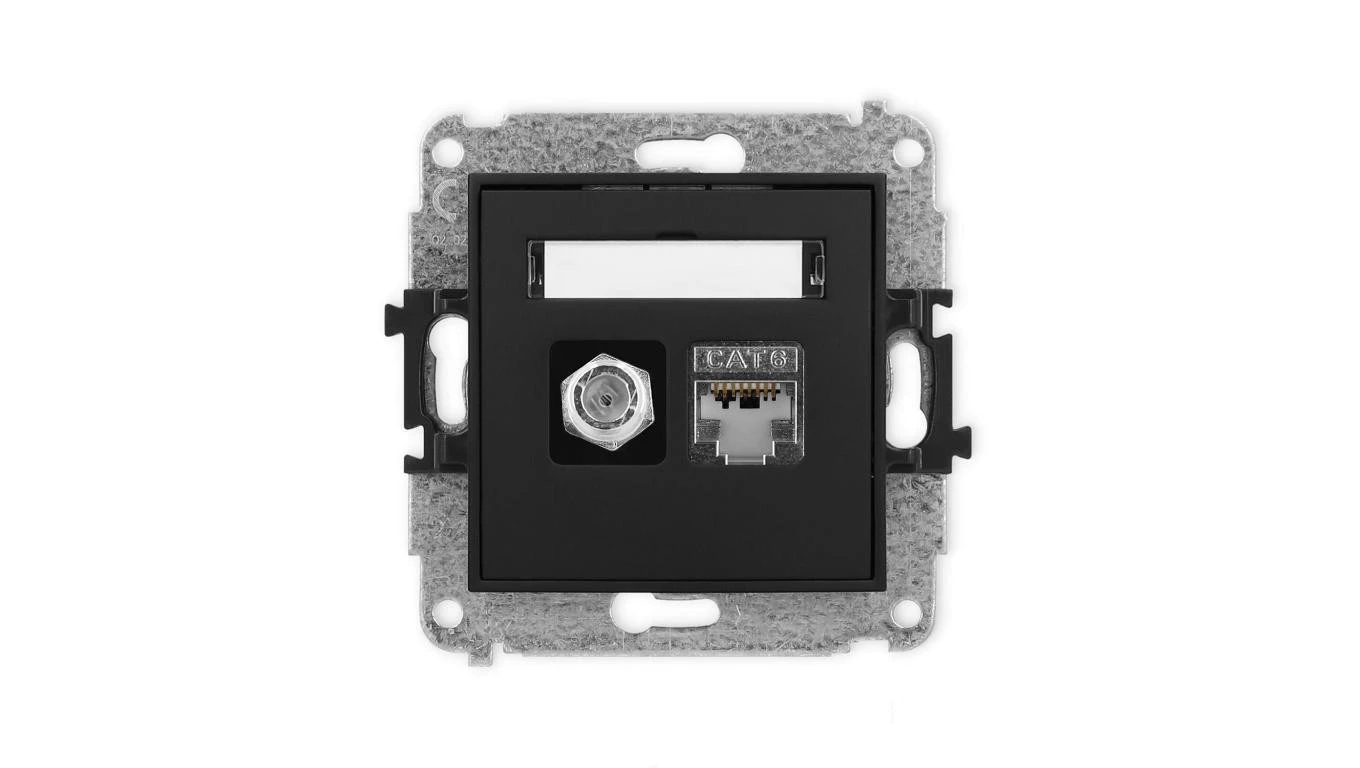 ICON Mechanizm gniazda antenowego poj. typu F (SAT) + gniazda komp. poj. 1xRJ45, kat. 6 ekranowane, 8-styk czarny mat 12IGFK-5
