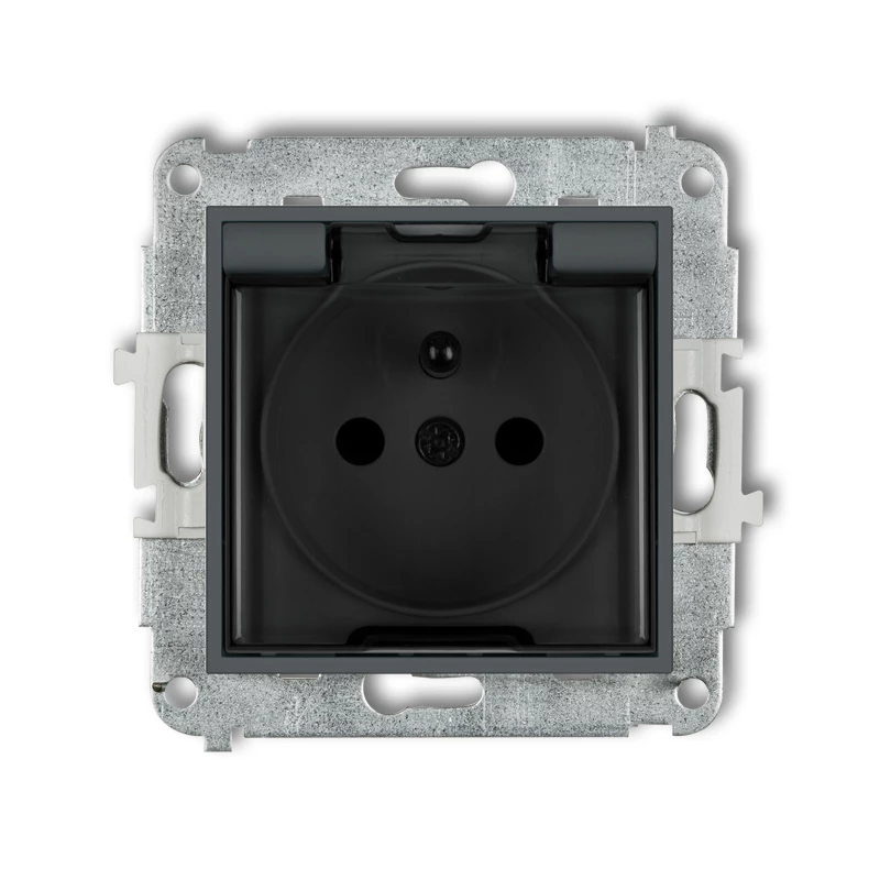 ICON Mechanizm gniazda bryzgoszczelnego z uziemieniem 2P+Z (klapka dymna, przesłony torów prądowych) grafitowy mat 28IGPB-1zdp