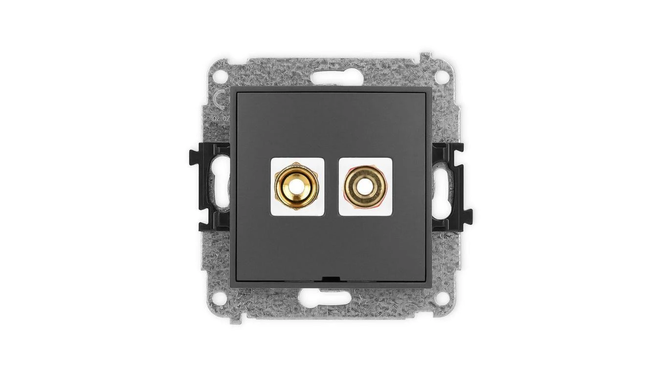 ICON Mechanizm gniazda głośnikowego poj. bez opisu (banan czerwony i czarny, pozłacany, 4 mm2 skręcany) grafitowy mat 28IGGBO-4