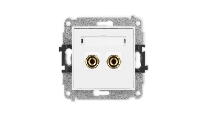ICON Mechanizm gniazda głośnikowego poj. (typu banan - czerwony i czarny, pozłacany, 4 mm2, do lutowania) biały mat 25IGG-3