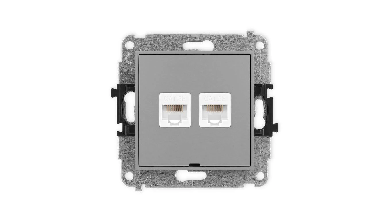 ICON Mechanizm gniazda komputerowego podwójnego 2xRJ45, kat. 5e, 8-stykowy, bez pola opisowego szary mat 27IGKBO-2