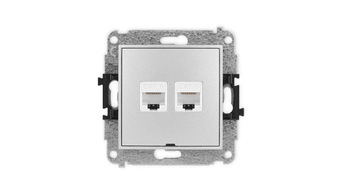 ICON Mechanizm gniazda komputerowego podwójnego 2xRJ45, kat. 6, 8-stykowy, bez pola opisowego srebrny metalik 7IGKBO-4