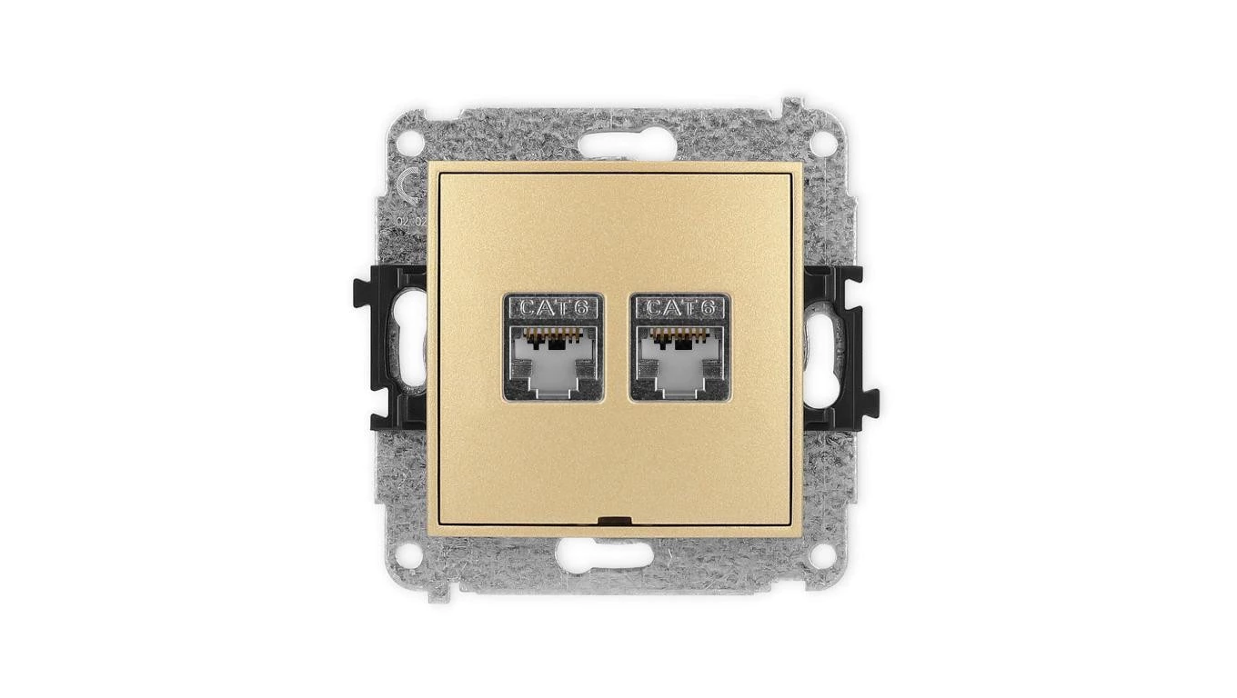 ICON Mechanizm gniazda komputerowego podwójnego 2xRJ45, kat. 6, ekranowane, 8-stykowy, bez pola opisowego złoty 29IGKBO-6