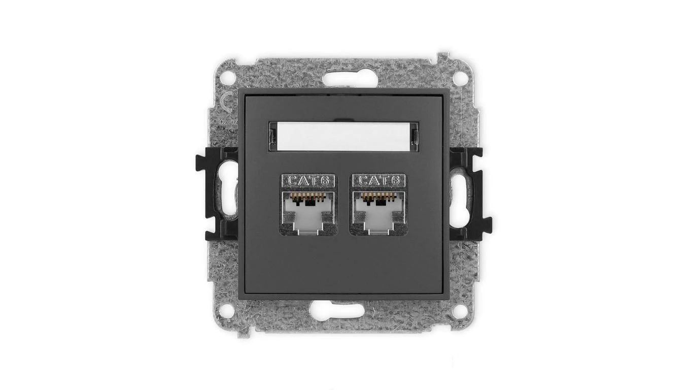 ICON Mechanizm gniazda komputerowego podwójnego 2xRJ45, kat. 6, ekranowane, 8-stykowy grafitowy mat 28IGK-6