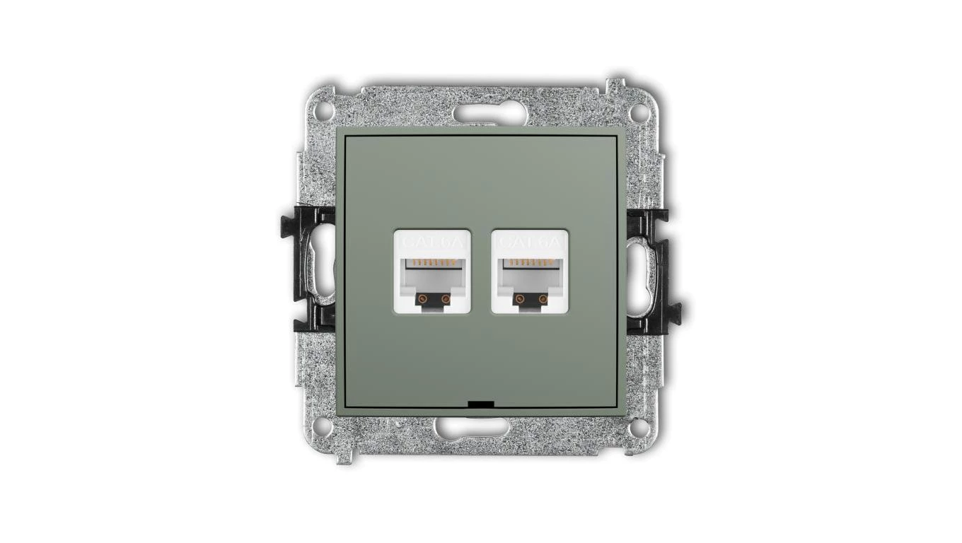 ICON Mechanizm gniazda komputerowego podwójnego 2xRJ45, kat. 6A, 8-stykowy, bez pola opisowego szałwiowy 61IGKBO-8