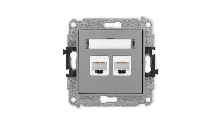 ICON Mechanizm gniazda komputerowego podwójnego 2xRJ45, kat. 6A, 8-stykowy szary mat 27IGK-8