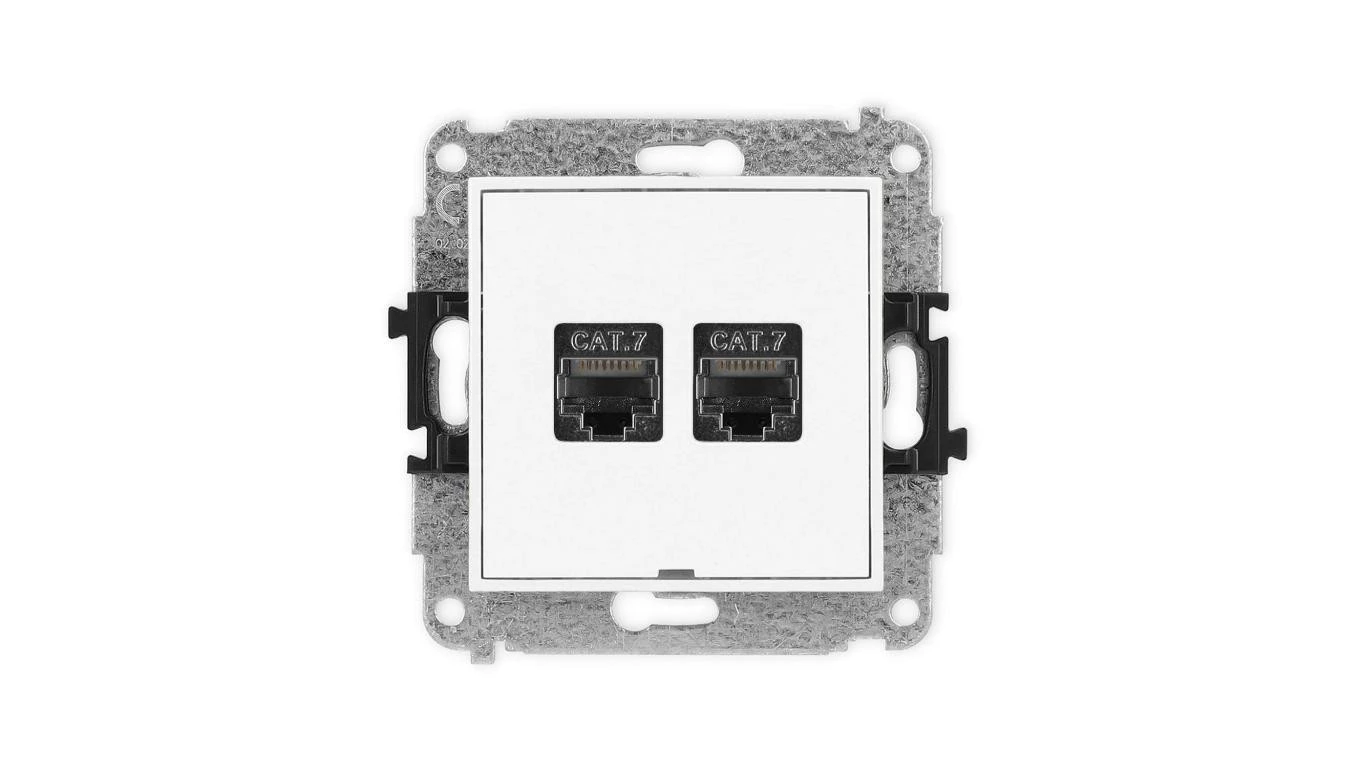 ICON Mechanizm gniazda komputerowego podwójnego 2xRJ45, kat. 7, ekranowane, 8-stykowy, bez pola opisowego biały mat 25IGKBO-10