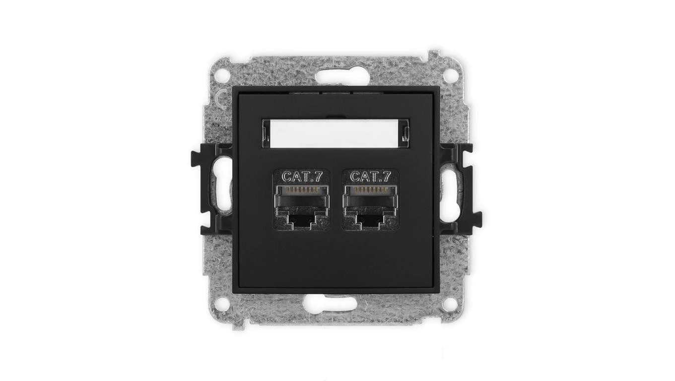 ICON Mechanizm gniazda komputerowego podwójnego 2xRJ45, kat. 7, ekranowane, 8-stykowy czarny mat 12IGK-10