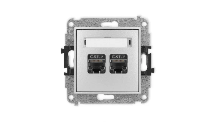 ICON Mechanizm gniazda komputerowego podwójnego 2xRJ45, kat. 7, ekranowane, 8-stykowy srebrny metalik 7IGK-10