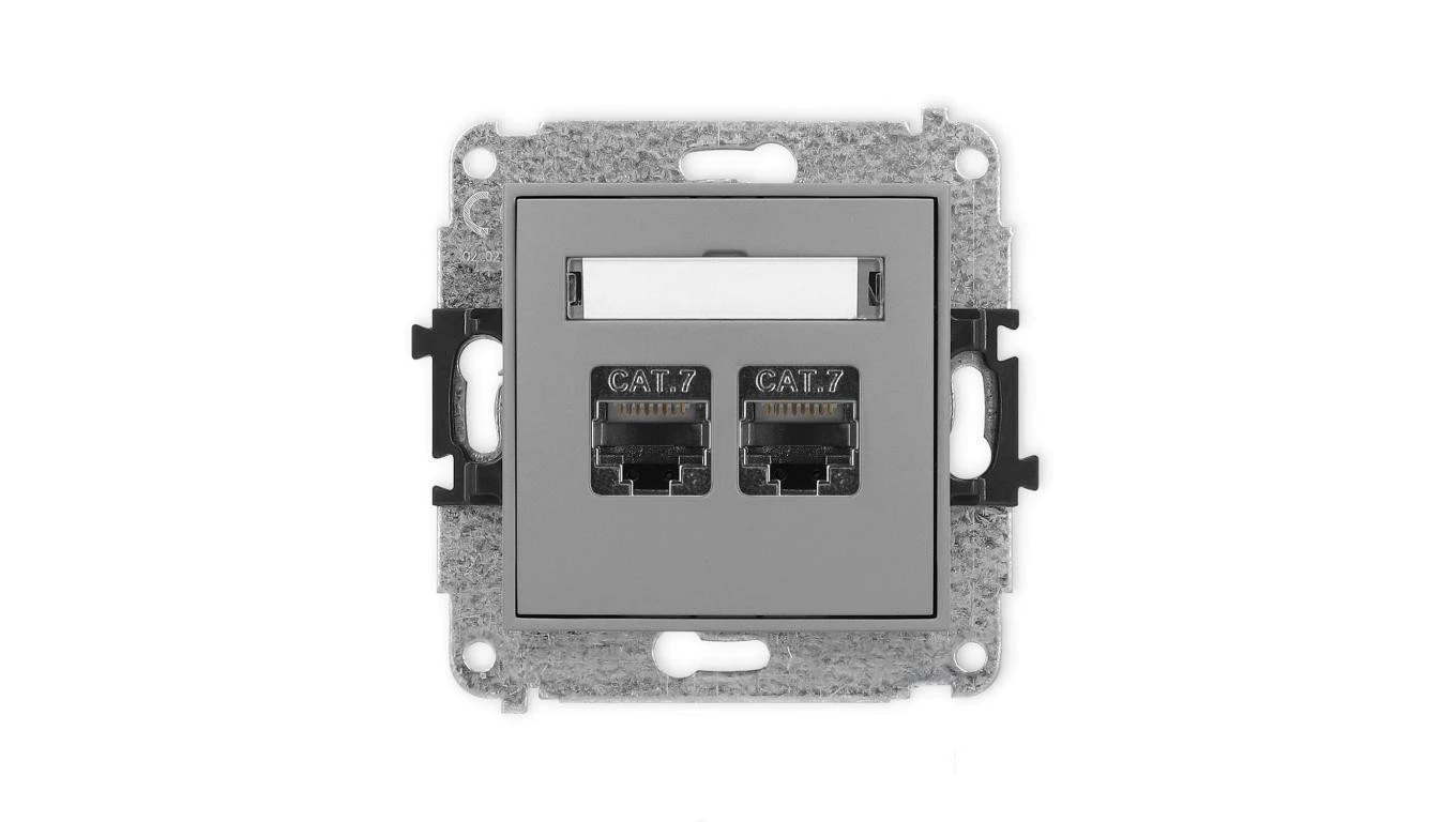 ICON Mechanizm gniazda komputerowego podwójnego 2xRJ45, kat. 7, ekranowane, 8-stykowy szary mat 27IGK-10