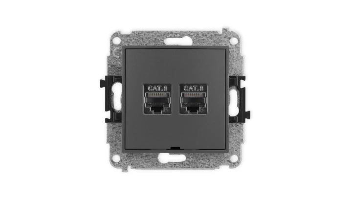 ICON Mechanizm gniazda komputerowego podwójnego 2xRJ45, kat. 8, ekranowane, 8-styk, bez pola opisowego grafitowy mat 28IGKBO-12