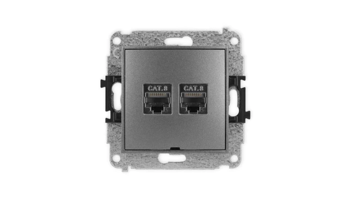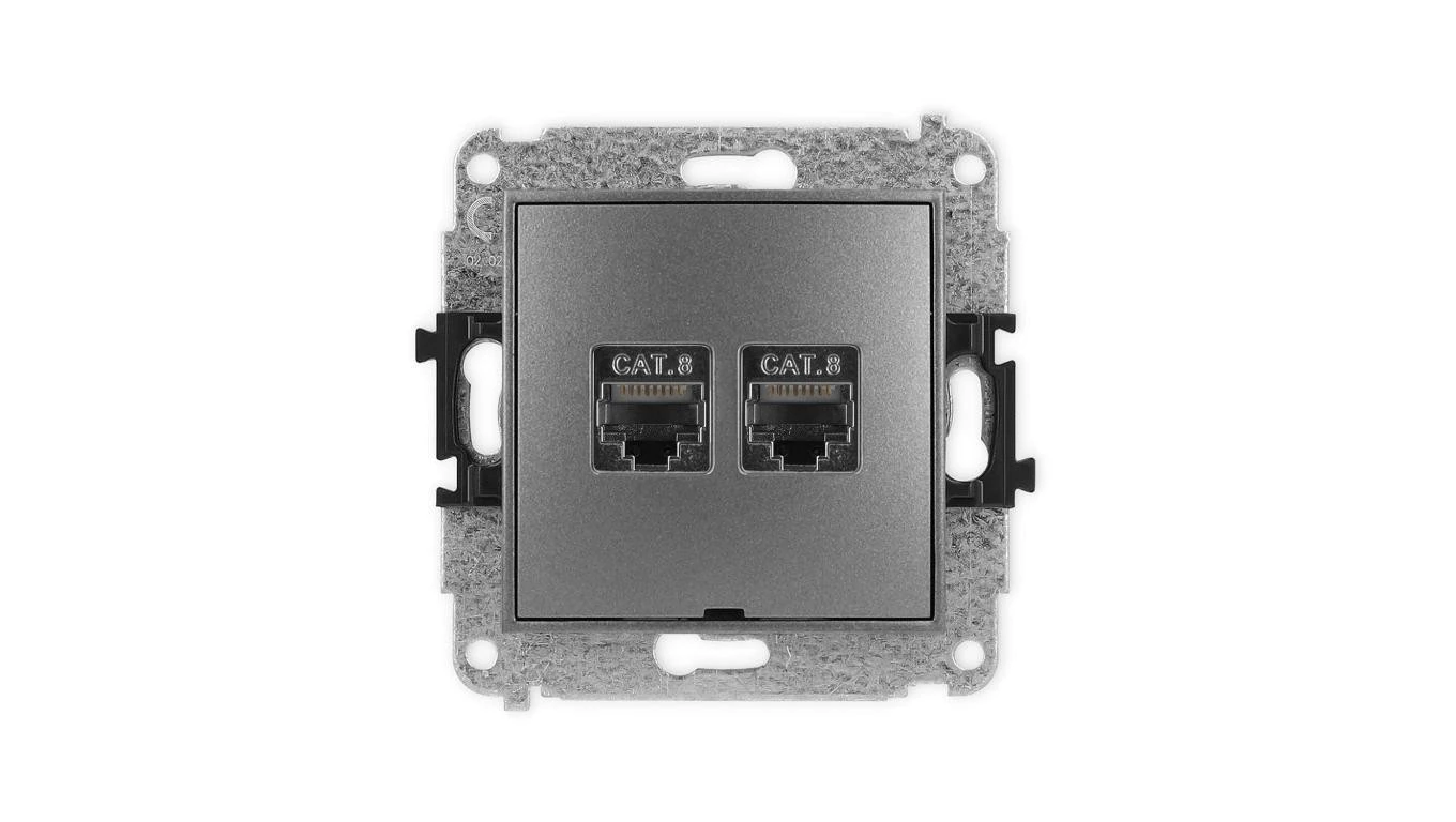 ICON Mechanizm gniazda komputerowego podwójnego 2xRJ45, kat. 8, ekranowane, 8-stykowy grafitowy 11IGK-12