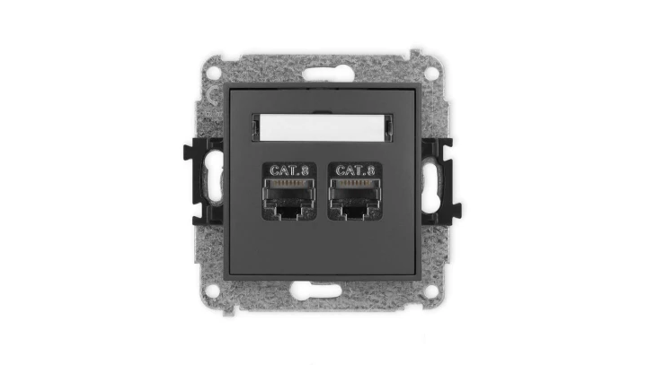 ICON Mechanizm gniazda komputerowego podwójnego 2xRJ45, kat. 8, ekranowane, 8-stykowy grafitowy mat 28IGK-12