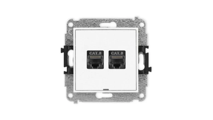 ICON Mechanizm gniazda komputerowego podwójnego 2xRJ45, kat. 8, ekranowane, 8-stykowy, bez pola opisowego biały mat 25IGKBO-12