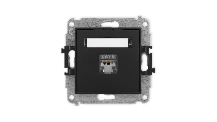 ICON Mechanizm gniazda komputerowego pojedynczego 1xRJ45, kat. 6A, 8-stykowy czarny mat 12IGK-7