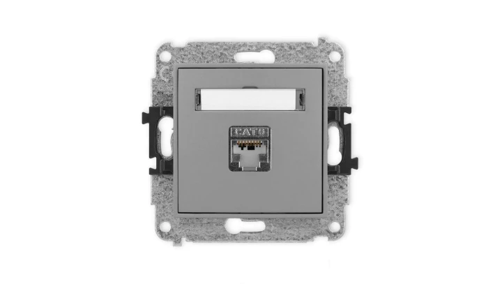 ICON Mechanizm gniazda komputerowego pojedynczego 1xRJ45, kat. 8, ekranowane, 8-stykowy, bez pola opisowego grafitowy 11IGKBO-11