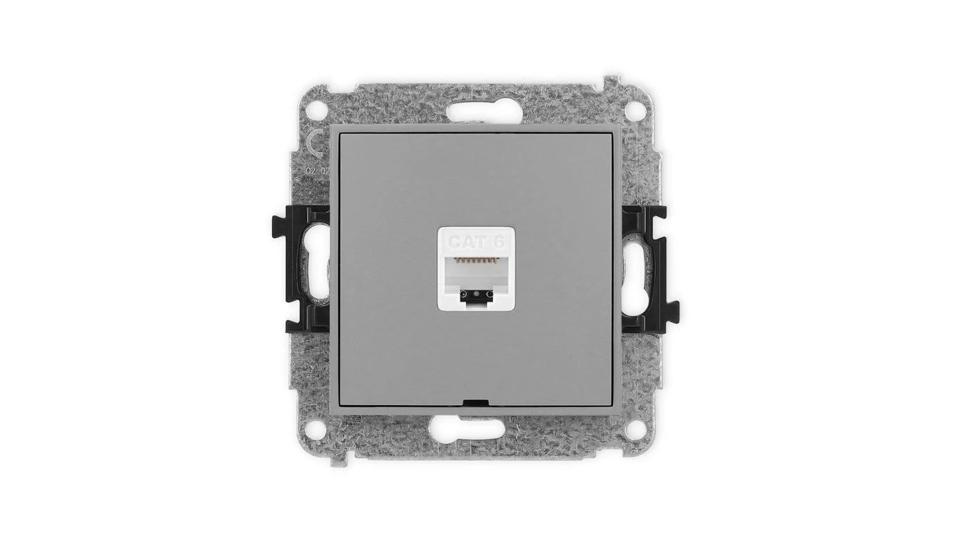 ICON Mechanizm gniazda komputerowego pojedynczego 1xRJ45, kat. 6, 8-stykowy, bez pola opisowego szary mat 27IGKBO-3