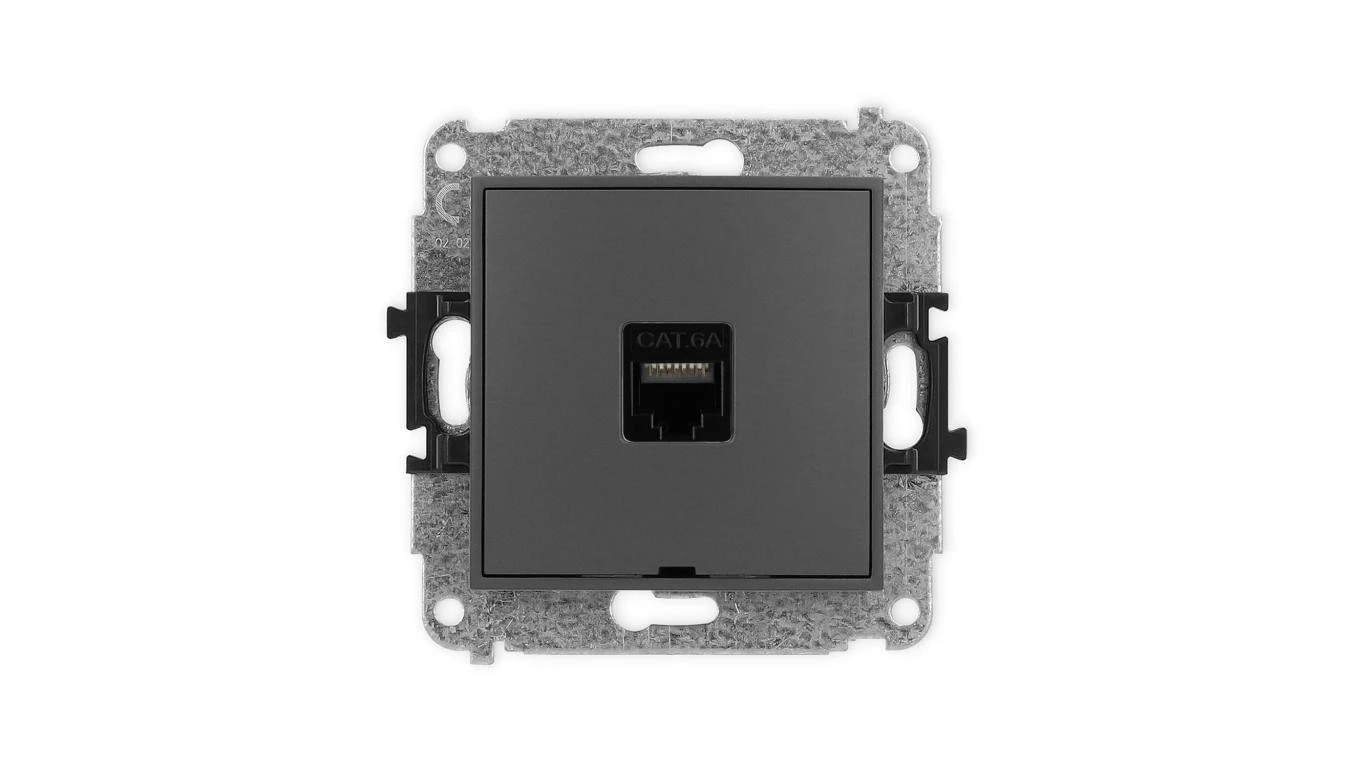 ICON Mechanizm gniazda komputerowego pojedynczego 1xRJ45, kat. 6A, 8-stykowy, bez pola opisowego grafitowy mat 28IGKBO-7