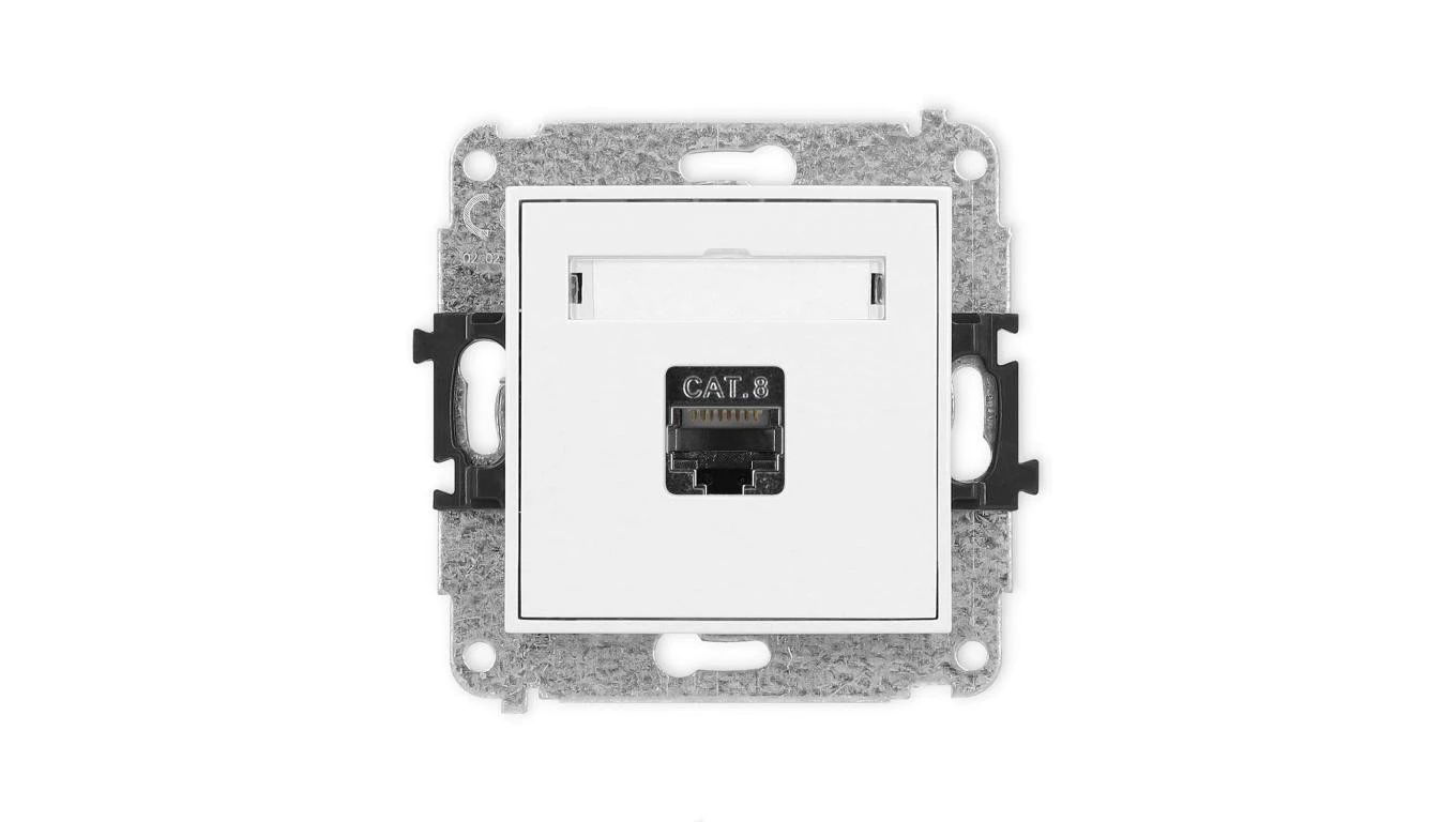 ICON Mechanizm gniazda komputerowego pojedynczego 1xRJ45, kat. 8, ekranowane, 8-stykowy biały mat 25IGK-11